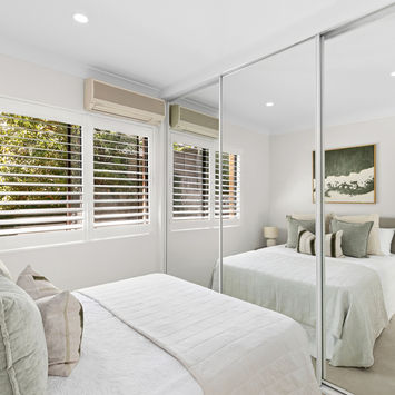 - Spacious double bedrooms with high ceilings, mirrored wardrobes, air conditioning, and renovated finishes; main bedroom includes ensuite